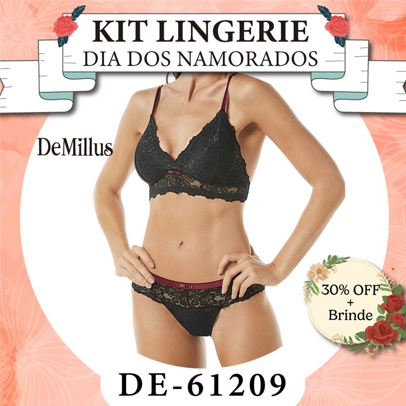 Dia dos Namorados Kit Lingerie DeMillus 61209+53209 Preto