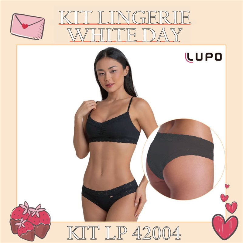 White Day Kit Lingerie Lupo 42004+43004 Preto