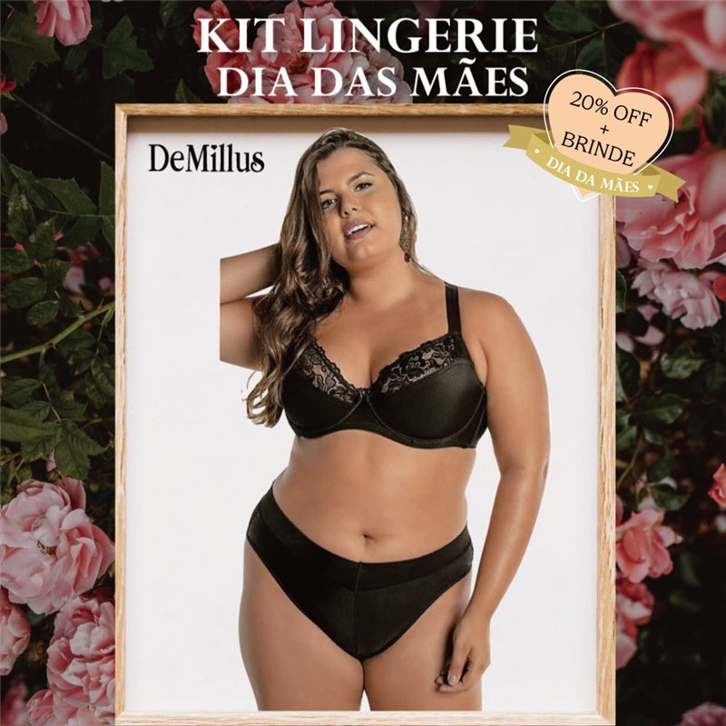 Dia das Maes Kit Lingerie DeMillus 64086+26065 Preto
